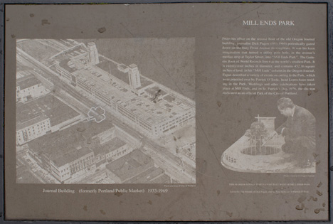 磨坊盡頭公園位于美國俄勒岡州的波特蘭市,是世界上面積最小的公園。公園原本是路燈的燈座,卻沒有投入使用。直到一位當地記者迪克·范根稱它為公園,并以他為《俄勒岡州學報》寫的專欄命名為磨坊盡頭。