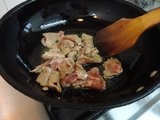 3炒鍋中注入油,大火加熱至4成熱,調成中小火放入牛肉劃散,待牛肉變色盛出備用。