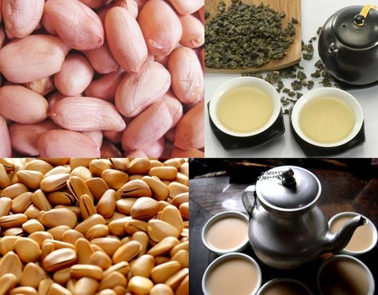 材料:松子2顆、花生5顆、核桃3顆、烏龍茶2克、熱水250毫升。將松子、核桃、花生清洗干凈后備用。將花生炒熟去皮,在壺中加入烏龍茶,用熱水沖,去除雜質后倒出水分。將松子、花生、核桃研磨成粉末。再把研磨好的粉末倒入烏龍茶壺中,加入開水, 悶2分鐘后即可飲用。