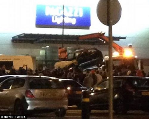 圍觀人群看福克斯殘骸被裝上救援車。