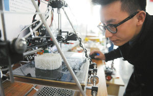 通信工程學(xué)院大二學(xué)生楊旭東從電子市場(chǎng)購(gòu)買五金件、伺服電機(jī)、主控板等,攢了一臺(tái)3D打印機(jī)。以ABS塑料條為原料,能打印出各種常見(jiàn)物品。比如門(mén)把手、掛衣鉤、酒杯,甚至為同學(xué)們研制的機(jī)器人打印零件。