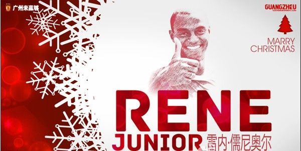 圣誕節前的一天,廣州恒大足球俱樂部官方宣布與巴甲傳統豪門桑托斯隊全能中場雷內·儒尼奧爾(Rene,全名:雷內·多斯·桑托斯·儒尼奧爾)正式簽約。雷內加盟廣州恒大,合同期四年。恒大在其官方網站中宣布,“這也正式開啟了俱樂部冬季轉會序幕,該球員將于2014年1月20日左右抵達廣州,屆時俱樂部將召開新援見面會”。