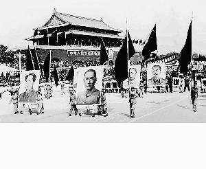 1950年10月1日參加國慶游行的政府部門隊伍1953年10月1日毛主席與獻花的少年先鋒隊員在天安門檢閱臺上1966年10月1日毛主席和周總理席地坐在廣場上1971年5月1日毛澤東和林彪最后一次登 ...